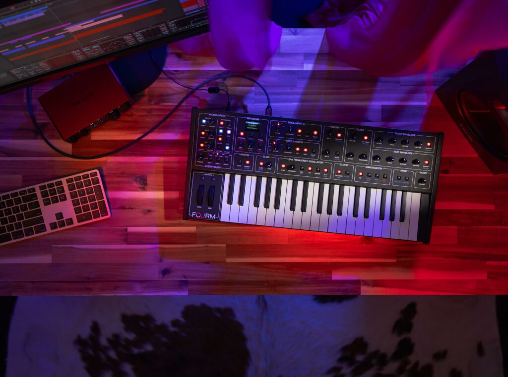 - Kompakt Tasarım: Oyun müzikleri genellikle masaüstü stüdyolarda başlar. Fourm, küçük boyutuyla devasa bir ses paleti sunarak retro-wave veya synth-wave türlerinde oyun müzikleri bestelemek için idealdir.