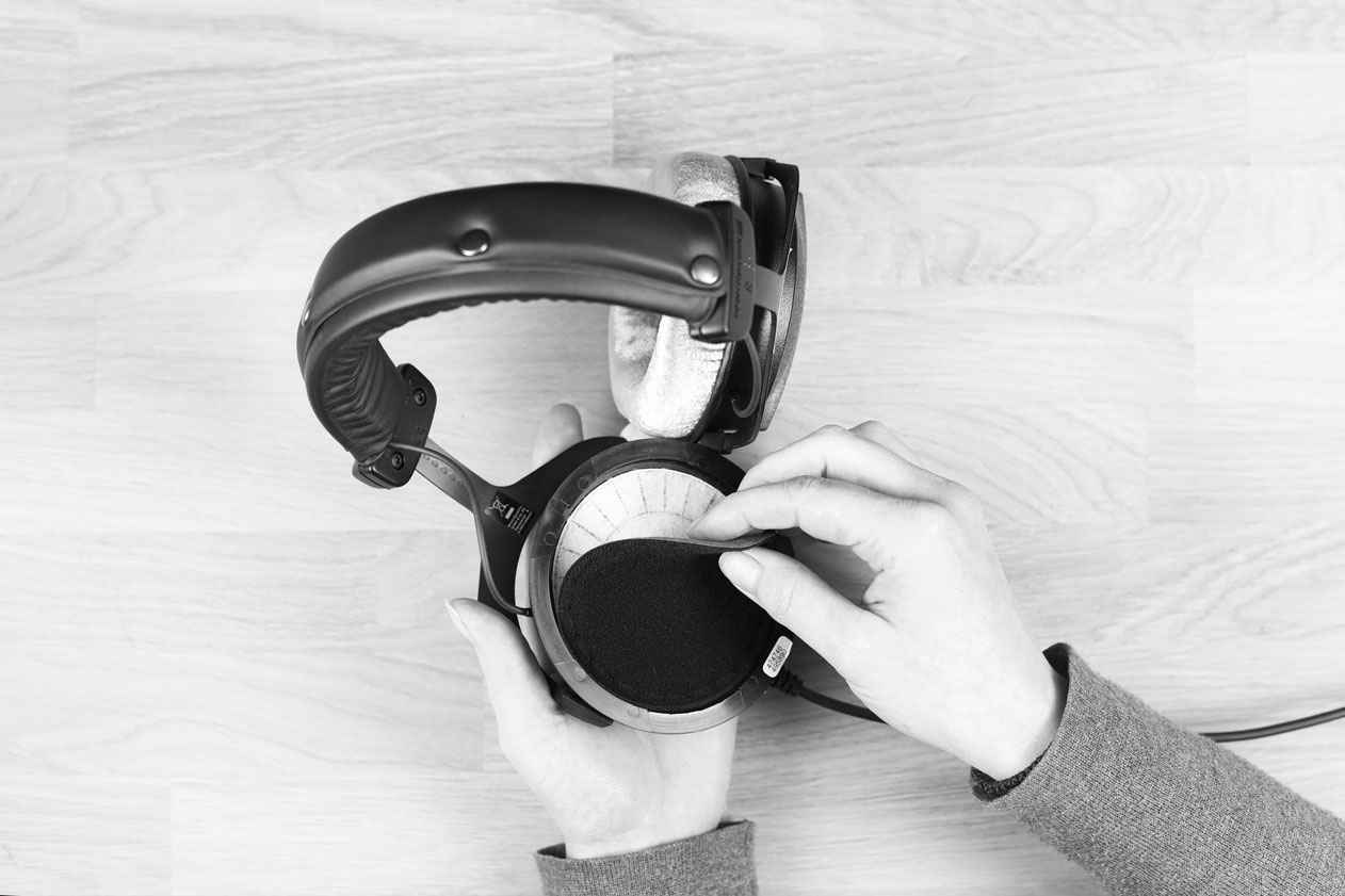 DT 270 PRO‘daki kulak yastıklarını değiştirmek, esasen PRO Classics serisi için açıklananla aynı şekilde çalışır. Yastıklar kulaklığa elastik bir suni deri halka aracılığıyla tutturulmuştur ve biraz basınç ve beceriyle çıkarılabilir.